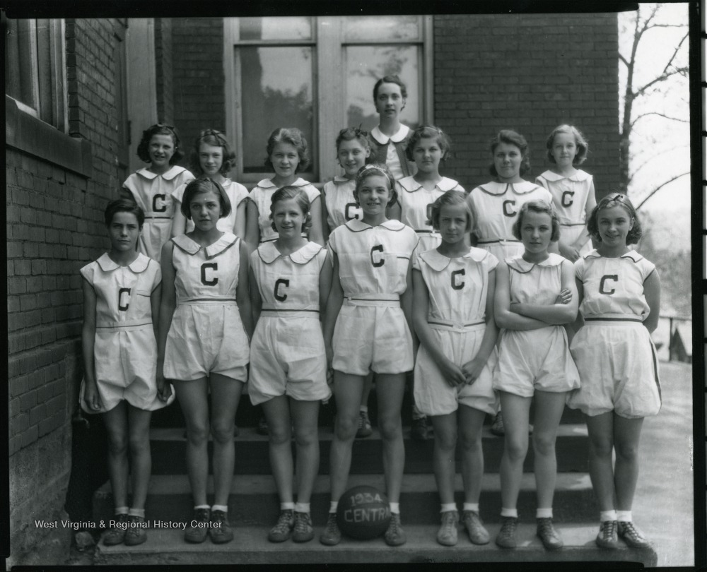 - Members of a Girls Basketball team in Grafton, West Virginia, pose for a group portrait.
