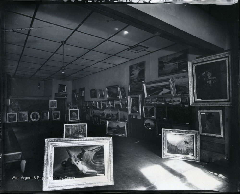 - Paintings by George Blaney fill this room during an Art Show in the 1930s.