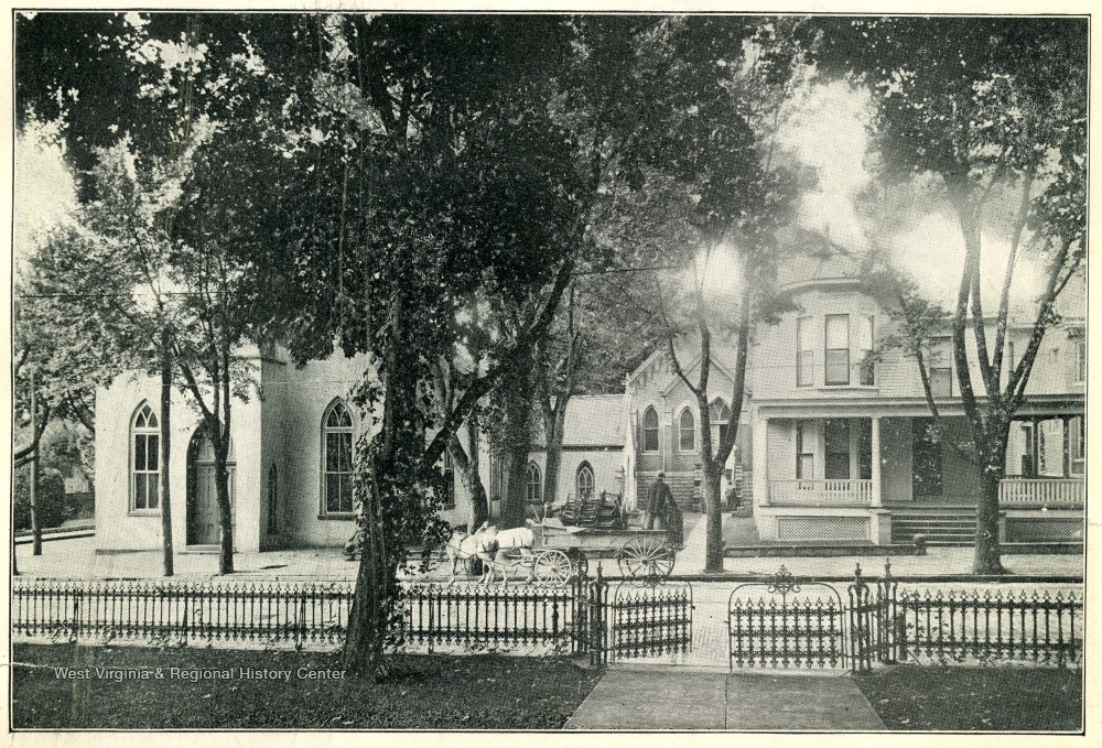 - Image from 'Industrial and Picturesque Clarksburg, W. Va.' published by the Press of the Clarksburg Telegram Company, Printers and Publishers, Clarksburg, W. Va., 1911. A horse and wagon is parked out front of the church.