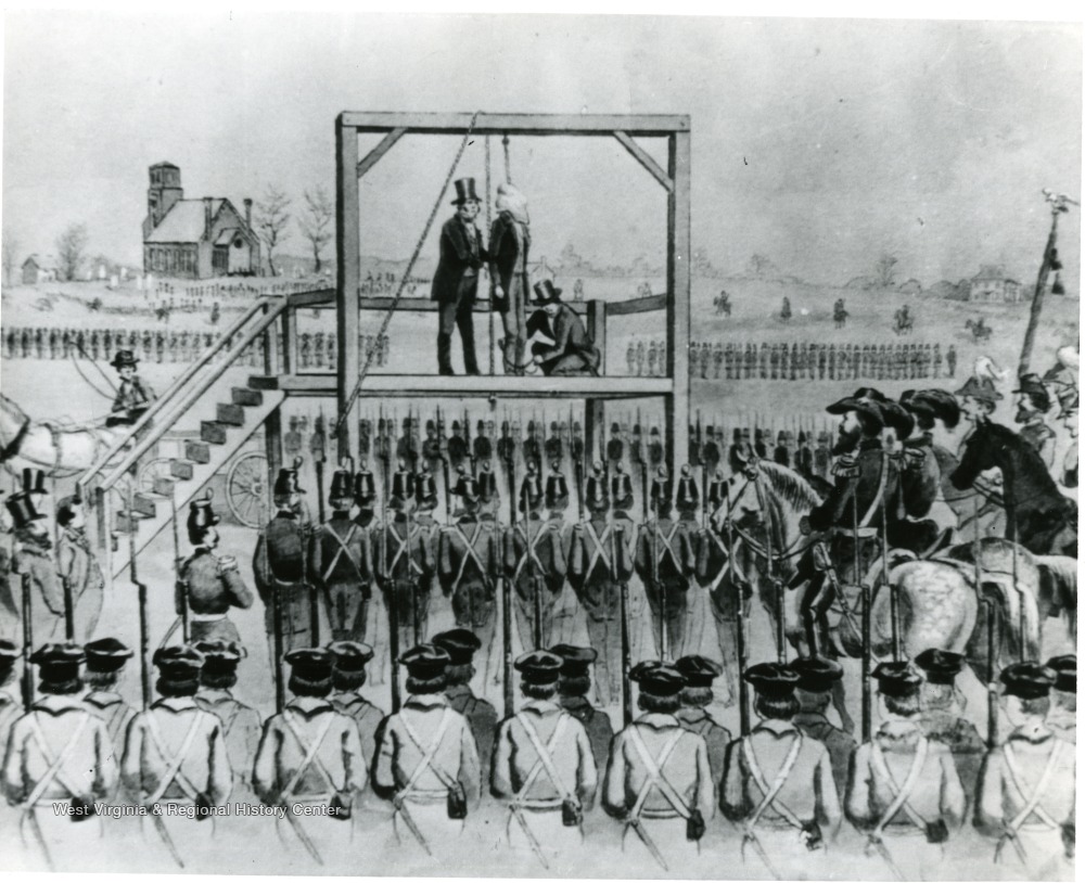 - Drawing of the hanging of John Brown at Charles Town, Jefferson County, West Virginia, approximately 12 miles from the site of his raid at Harpers Ferry.