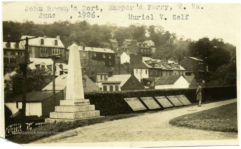 - A woman reads the historic markers next to a monument to John Brown's Fort in Harpers Ferry, W. Va. 'Muriel V. Self."