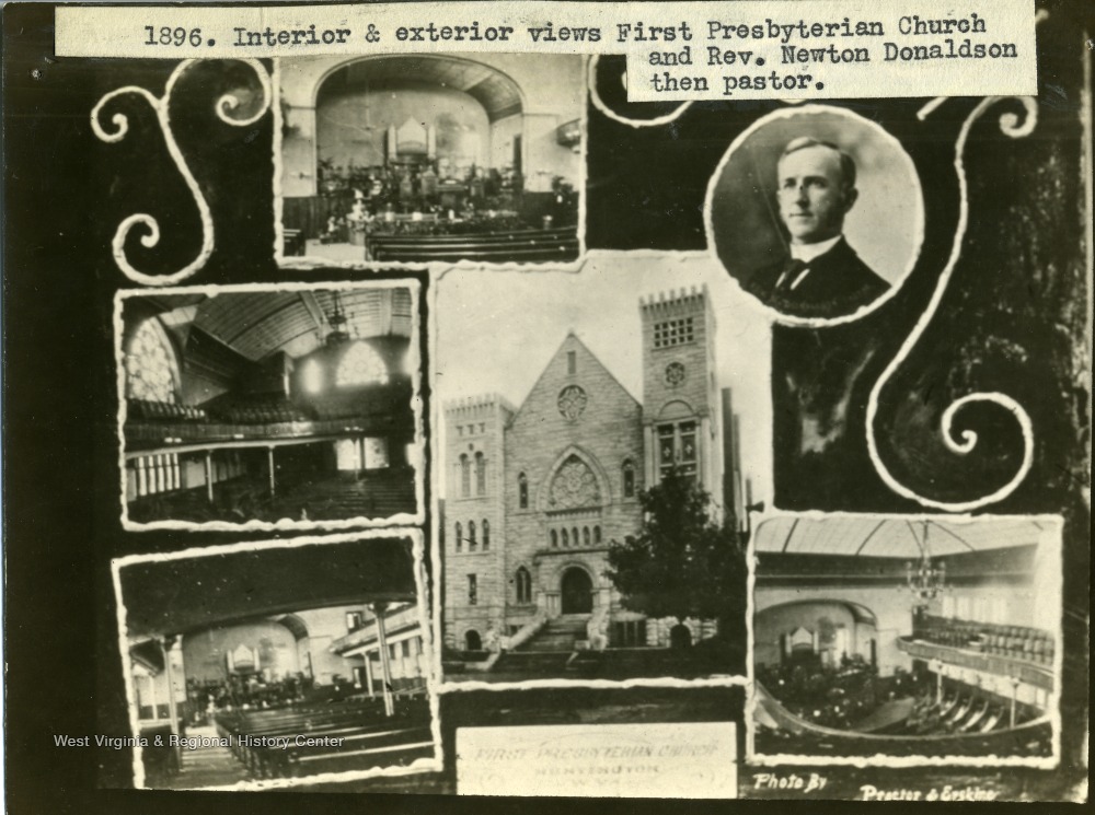 - 'Interior and exterior views of First Presbyterian Church and Rev. Newton Donaldson, then pastor.'