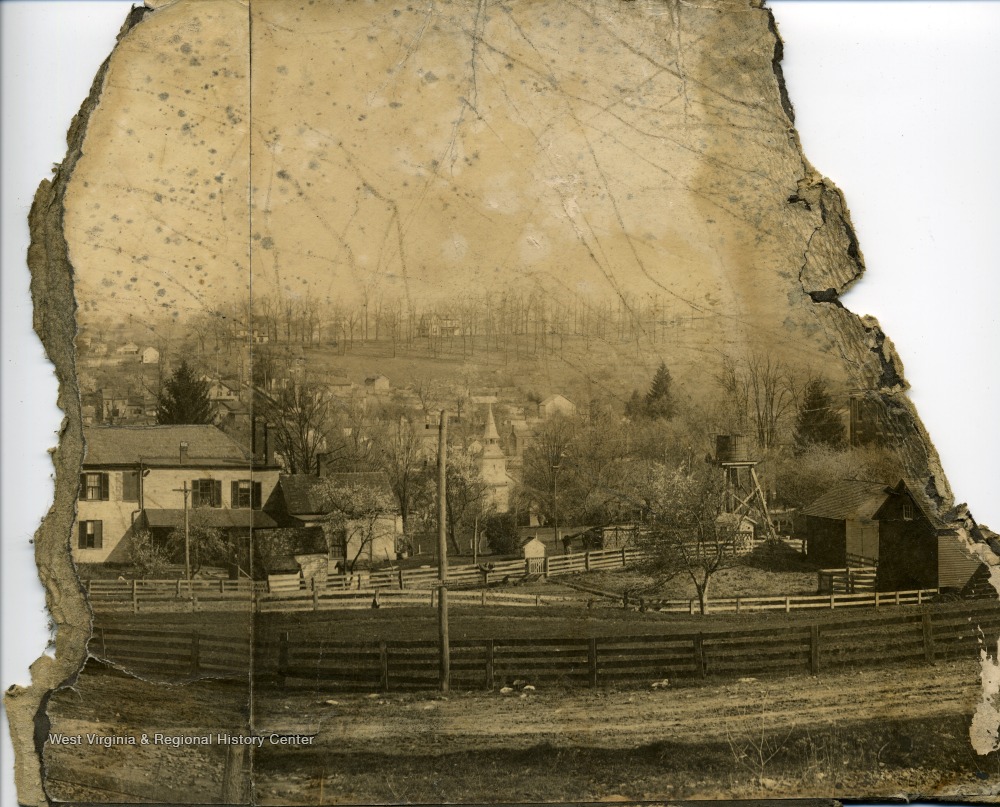- View of Lewisburg, W. Va. that includes a fenced in area and other houses.