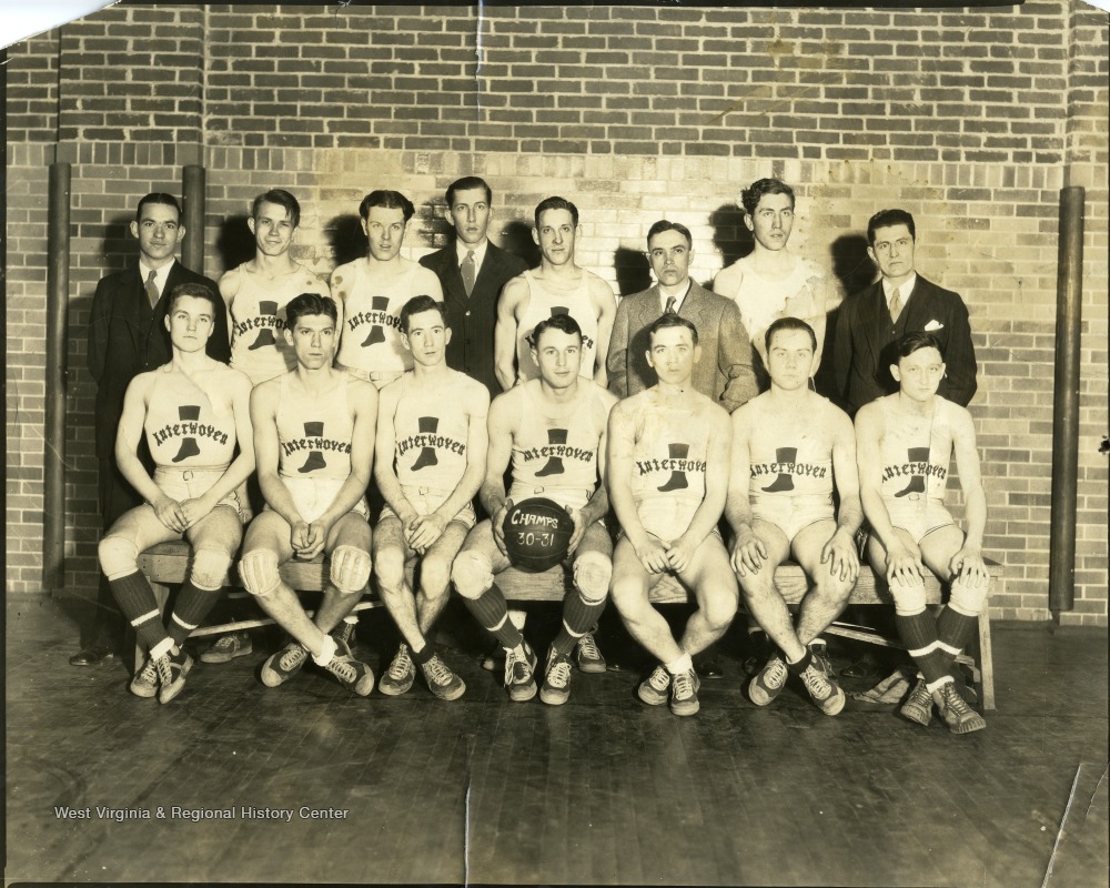 - Team picture of the Interwoven Mills basketball team. The basketball reads "Champs 30-31." Martinsburg, W. Va.
