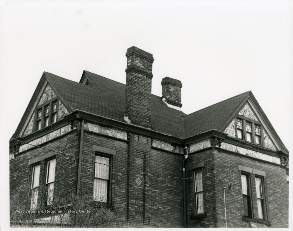- A close-up of the second story and roof of the Marshall House in New Cumberland, West Virginia.