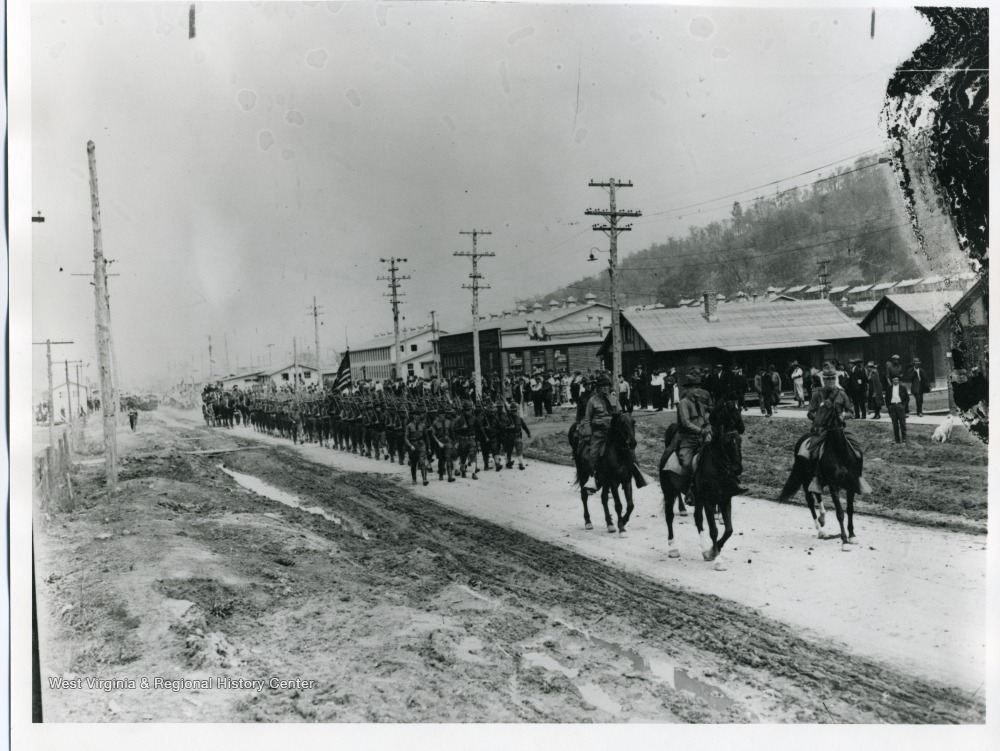 - 'Changing of guard at Nitro, 1918, 40th St. in middle ground.'