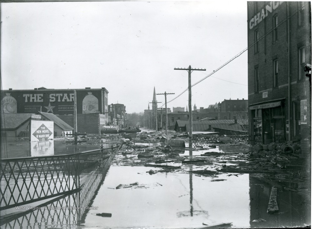 - Flooded Market Street with debris in the water, Parkersburg, W. Va.