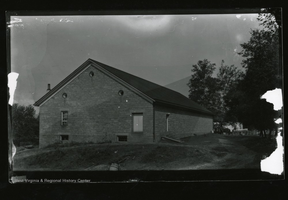 - The back of the Morgantown Ice House in Morgantown, West Virginia. A horse-drawn wagon is in front of the building.