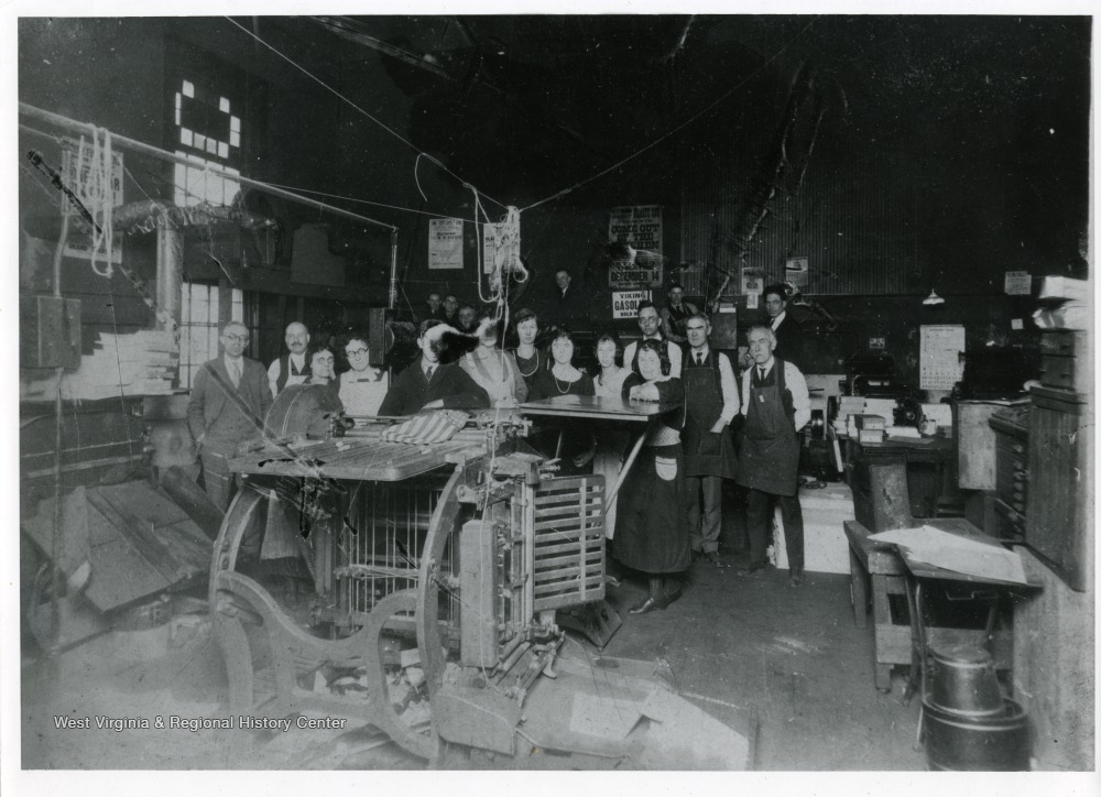 - Employees of the Morgantown Printing and Binding business pose for a group portrait. The business was located at the corner of Pleasant and Chestnut Streets in Morgantown, West Virginia.