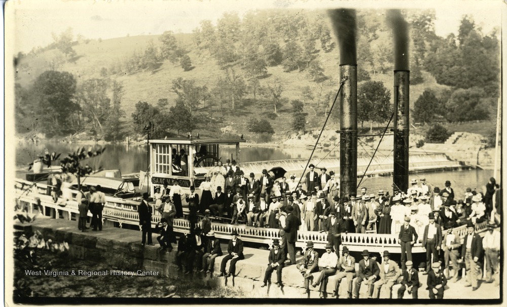 - Townspeople aboard the Steamboat Isaac M. Mason, at the Lock and Dam, on the Monongahela River in Morgantown, West Virginia.
