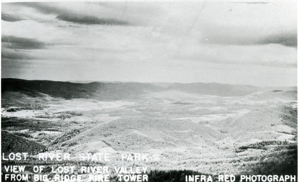 - View of the Lost River Valley from the Big Ridge Fire Tower. 'Infrared Photograph.'