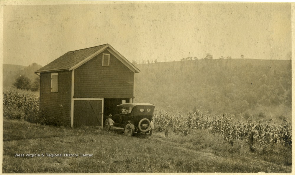 Model T Ford Parked by Spring House on Point Breeze Farm, Bethany, W. Va.