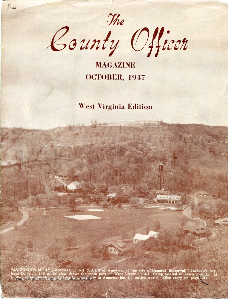 - The cover of The County Officer Magazine, West Virginia Edition. 'Jackson's Mill Birthplace of 4-H Clubs of America, at the site of General 'Stonewall' Jackson's boyhood home... this aerial view shows the main part of West Virginia's 4-H Camp located in Lewis County. It is the pioneer development of its kind not only in America but the entire world.'