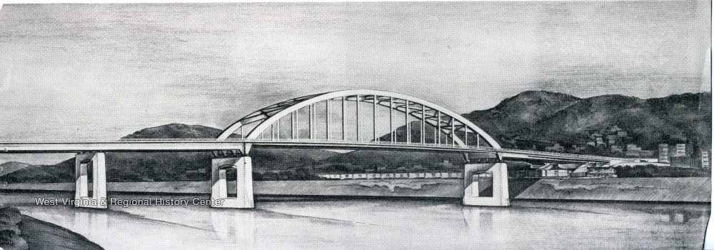 - Drawing of the U.S. 40 at Wheeling-proposed bridge over the Ohio River.