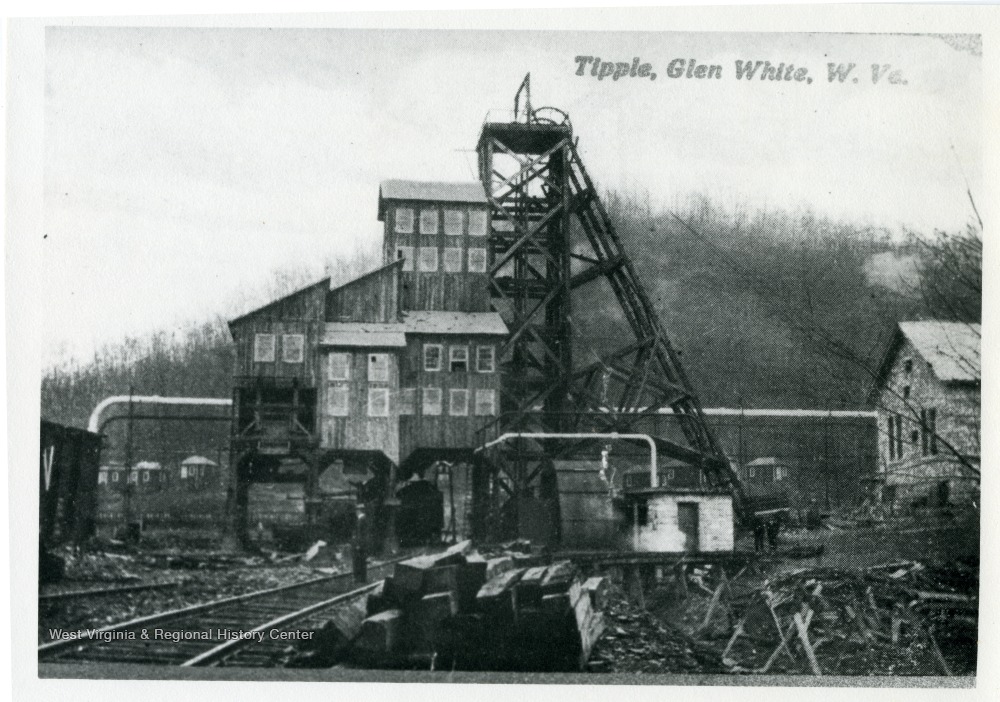 - A picture postcard of a coal tipple in Glen White, Raleigh County, West Virginia.