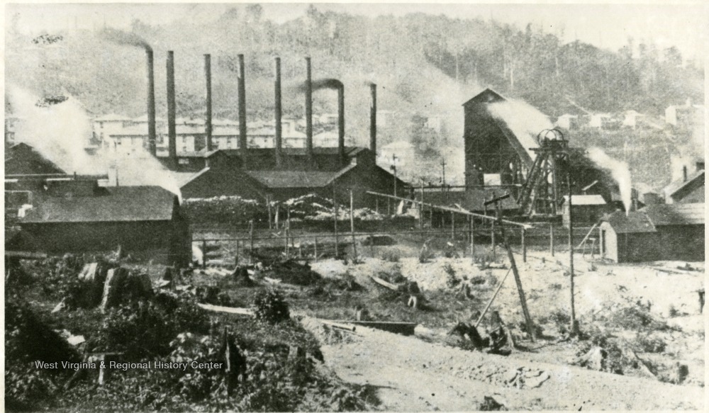 - View of Davis Coal and Coke Company with smoke stacks, Tucker County.