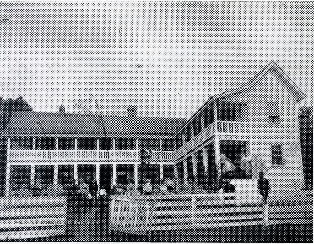 - Front view of John Coiner house with people standing in front. House is located near Pence Springs, W. Va.