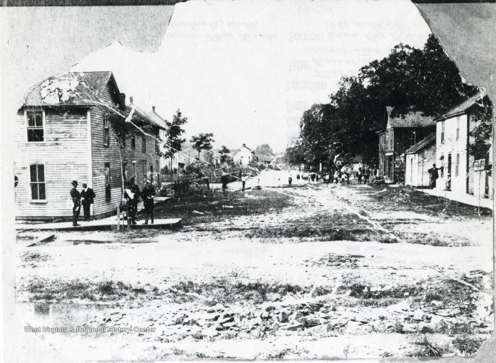 - Street scene after the flood on Shaver's Fork River. 'O. Homer Floyd Fansler, Hendricks, W. Va. is written on the back of the photo.'