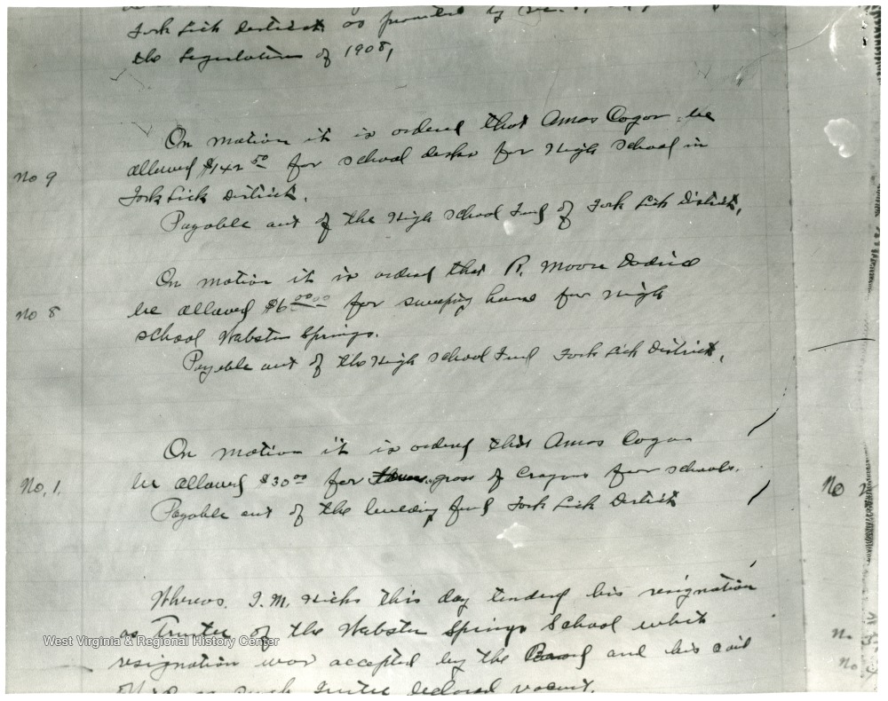 - Minutes of Fork Lick Dist. Board of Education, Webster County, W. Va.