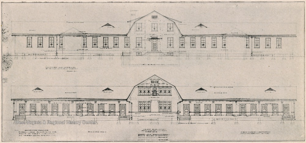 Front and Rear Elevations, Receiving Building at the State Tuberculosis Sanitarium, Preston County, W. Va.