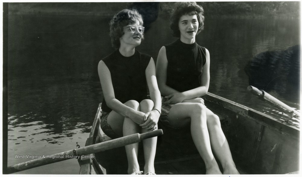 - Rowlesburg High School Princess Beverly Weaver and Mary Waybright Boating at Schwab's Camp, Preston County, W. Va.