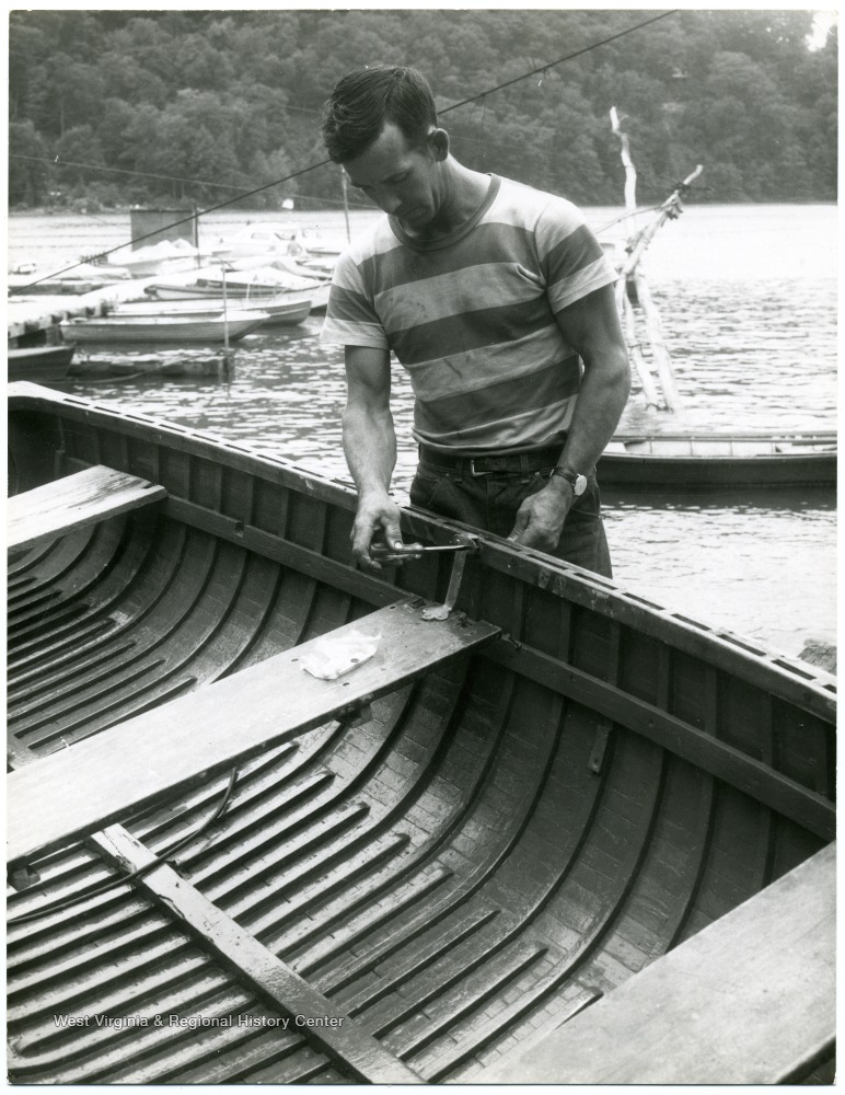 - Working on Boat at Blosser's Marina, Cheat Lake, Monongalia County, W. Va.