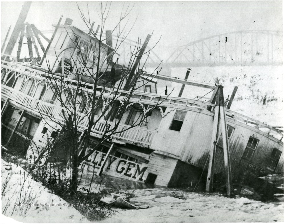 - Sunken Steamboat 'Valley Gem' in the Icy Monongahela River at Morgantown, Monongalia County, W. Va.