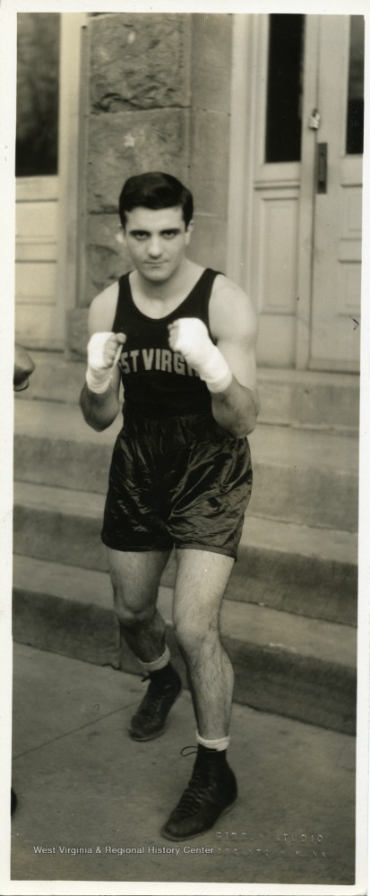 - Portrait of an unidentified member of the West Virginia University Boxing Team.