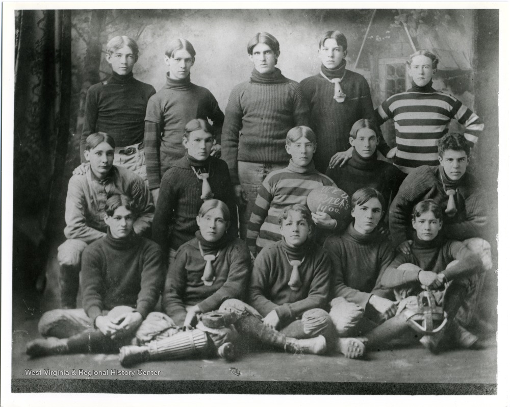 - Group portrait of the 1900 West Virginia University Prep Football Team.
