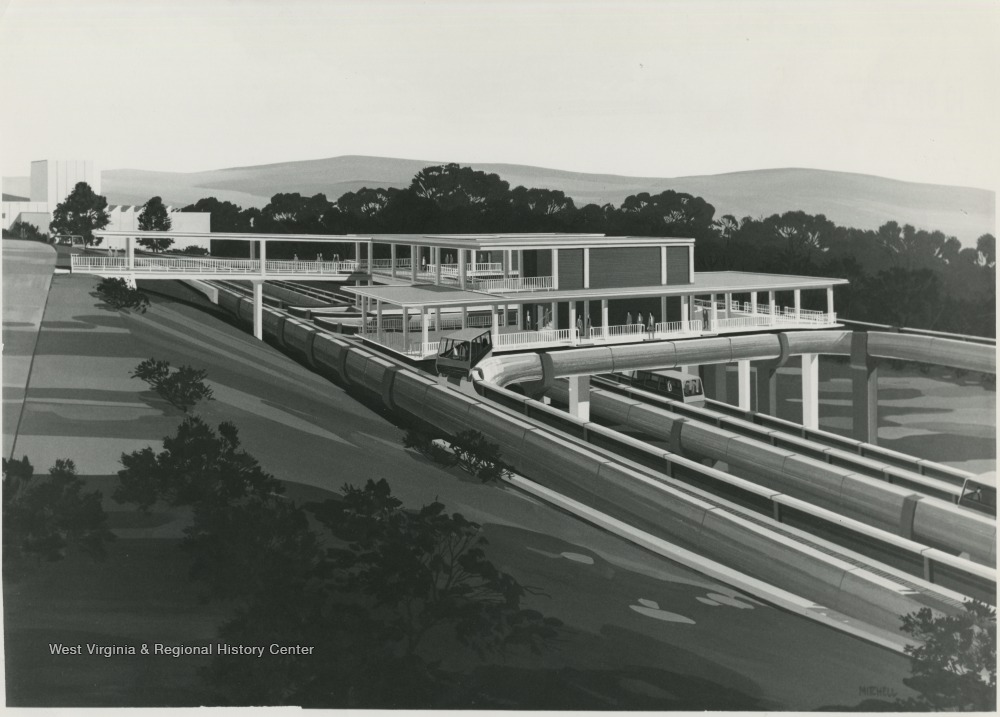 - Architect's Drawing of the Personal Rapid Transit (PRT) Project, Engineering Station, West Virginia University