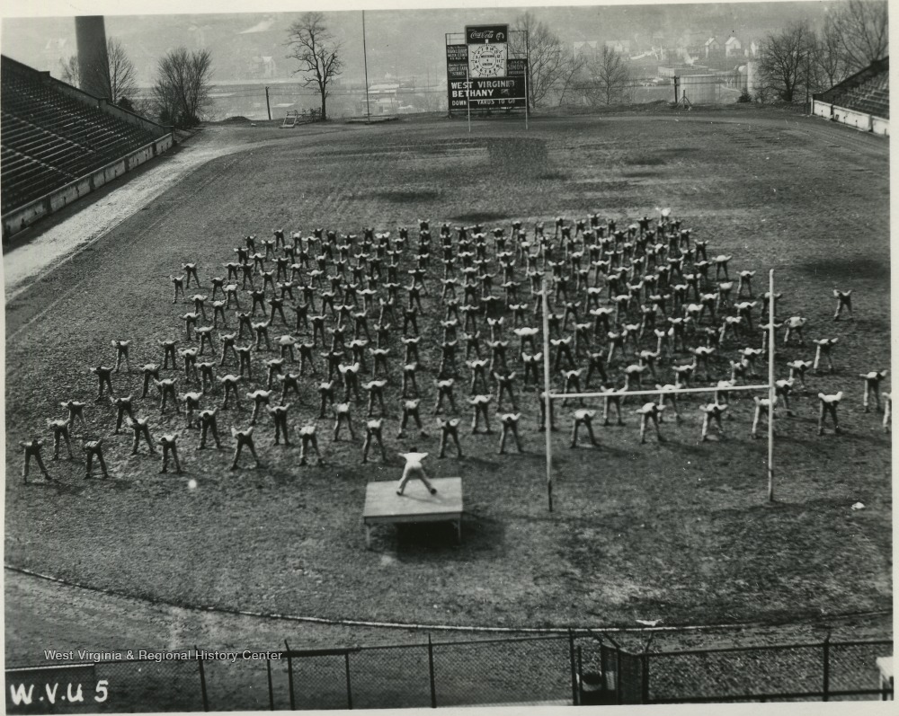- Physical education and training, Military., Calisthenics--West Virginia--Morgantown., WVU--Buildings--Mountaineer Field., Stadiums--West Virginia--Morgantown.