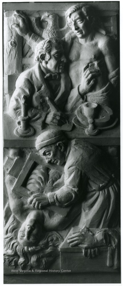 - WVU--Buildings--Medical Center., Relief (Art)--West Virginia--Morgantown., Medical centers--West Virginia--Morgantown., Sculpture--West Virginia--Morgantown.