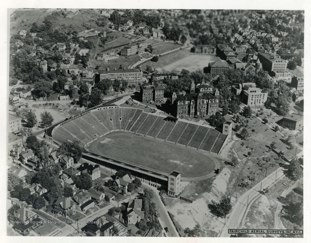 - An aerial view of old Mountaineer Field. Also viewable are Woodburn Hall, Martin Hall, Chitwood Hall, Oglebay Hall, and Stalnaker Hall.