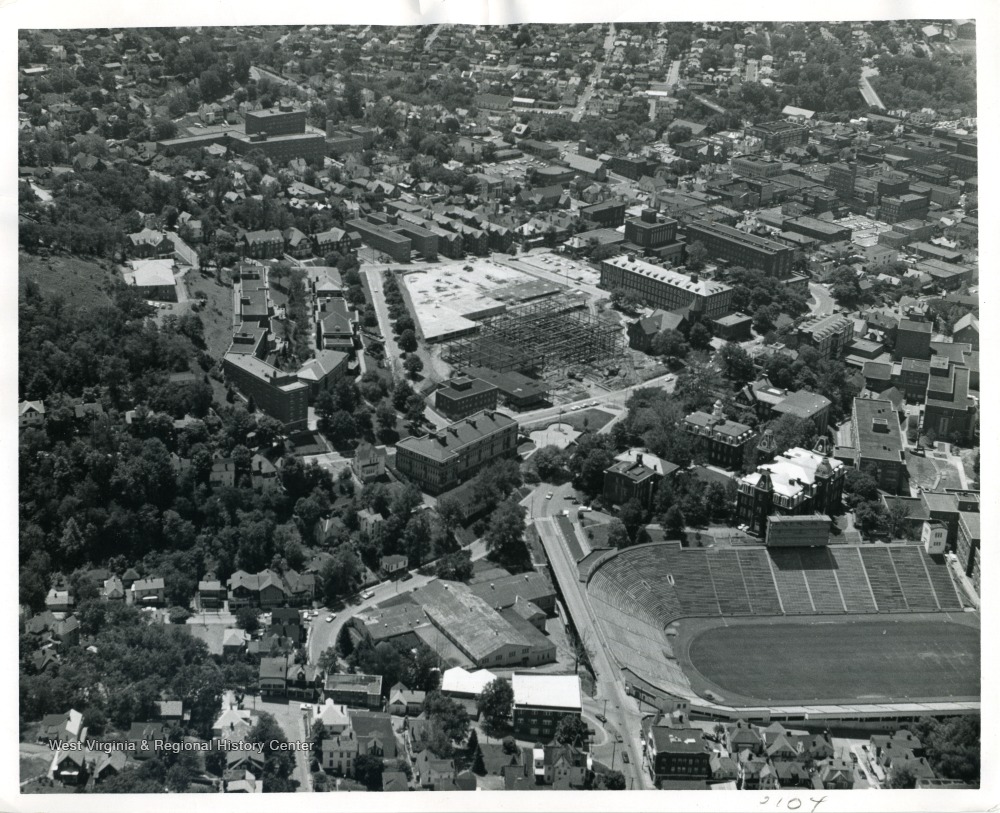 - Mountaineer Field in bottom right, the beginning of Mountainlair construction in center.