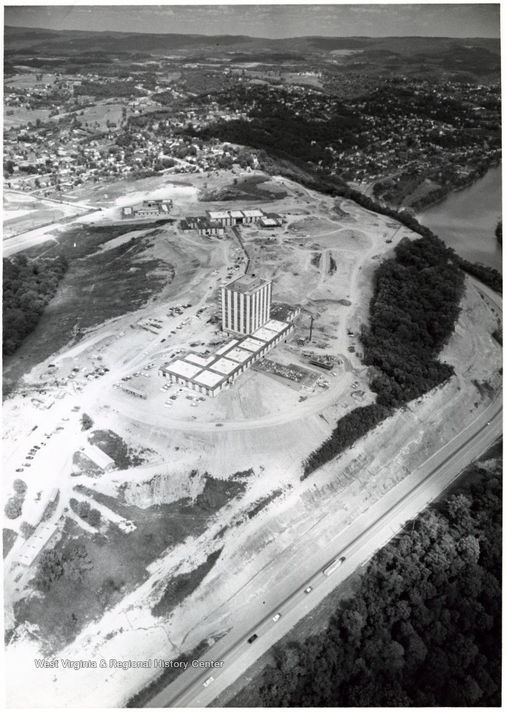 - Aerial View of Evansdale Campus Under Construction, West Virginia University
