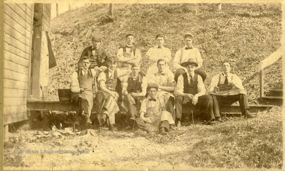 - Students in a WVU medical class of 1896-1897 appropriately attired with long aprons pose outside of the Hick House for cadaver dissection.