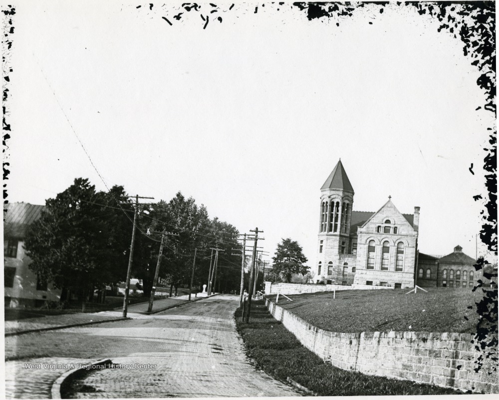 View Looking up University Avenue in front of Stewart Hall (Library), West Virginia University