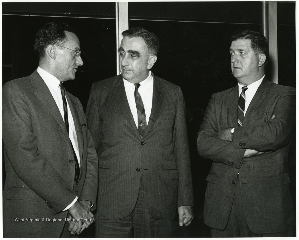 - 'Professor of physics-at-large and legendary 'Father of the H-Bomb' Edward Teller (center) chats with symposium planning committee chairman, Guy Stewart (right), and moderator John Troan, editor of The Pittsburgh Press (left).