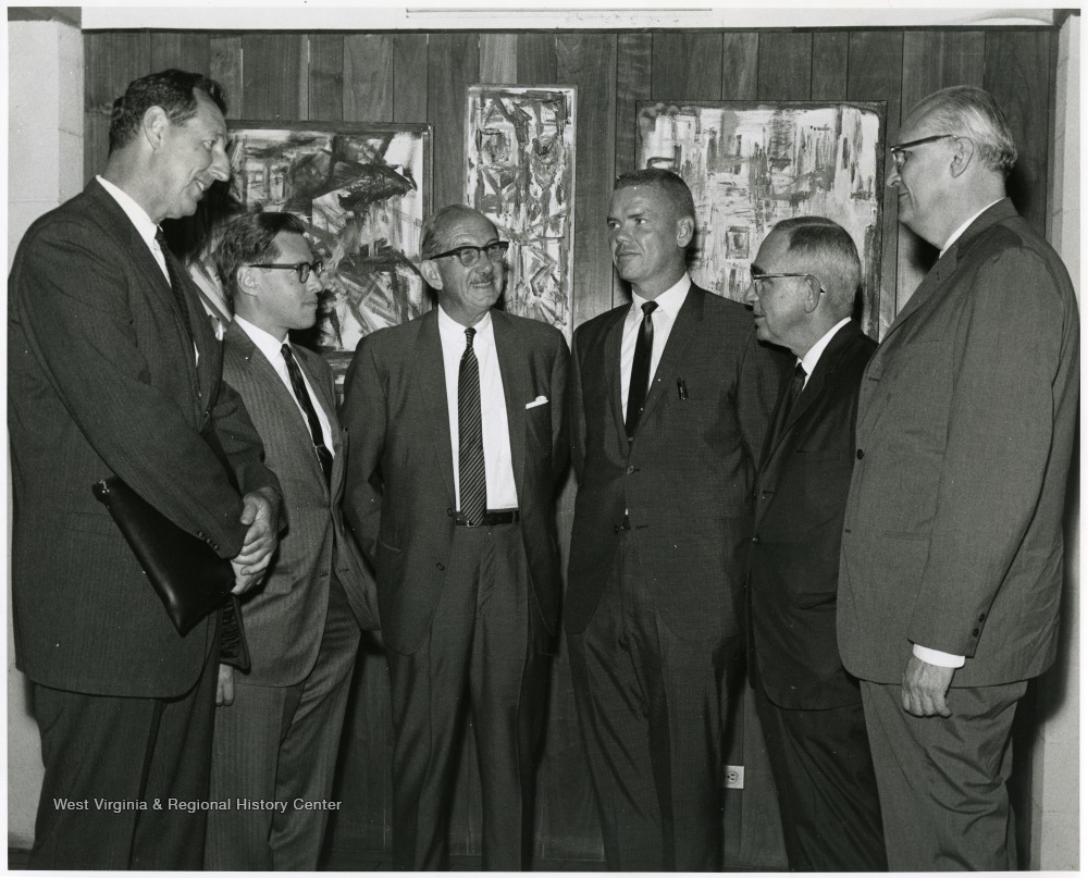 - 'A scene from the Sept. 12, 1967 seminar, 'The State University,' shows, from left to right: Ruel Foster, WVU prof. and chairman of English and chairman of the seminar planning committee; Allan Ostar, executive director of the Association of State Colleges and Universities; Russell Thackrey, Russell, executive director of the National Association of State Universities and Land-Grant Colleges; David White, WVU director of Forestry and Prof. of Forestry Economics; Clark Sleeth, WVU Dean of Medicine; and Fred Harrington, President of the University of Wisconsin.
