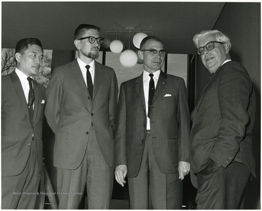 - 'Dr. W. Gordon Whaley, University of Texas Graduate School (right), is shown with the WVU professors who served as panelists to react to his address at the Dec. 6, 1967 seminar on "The Future of Graduate Education at WVU." Panelists include: Chin-Yung Wen, prof. of Chemical Engineering (left); Hugh Lindsay, prof. of Physiology (Second from left): and Homer Patrick, Prof. and chairman of Agricultural Biochemistry (second from right).'