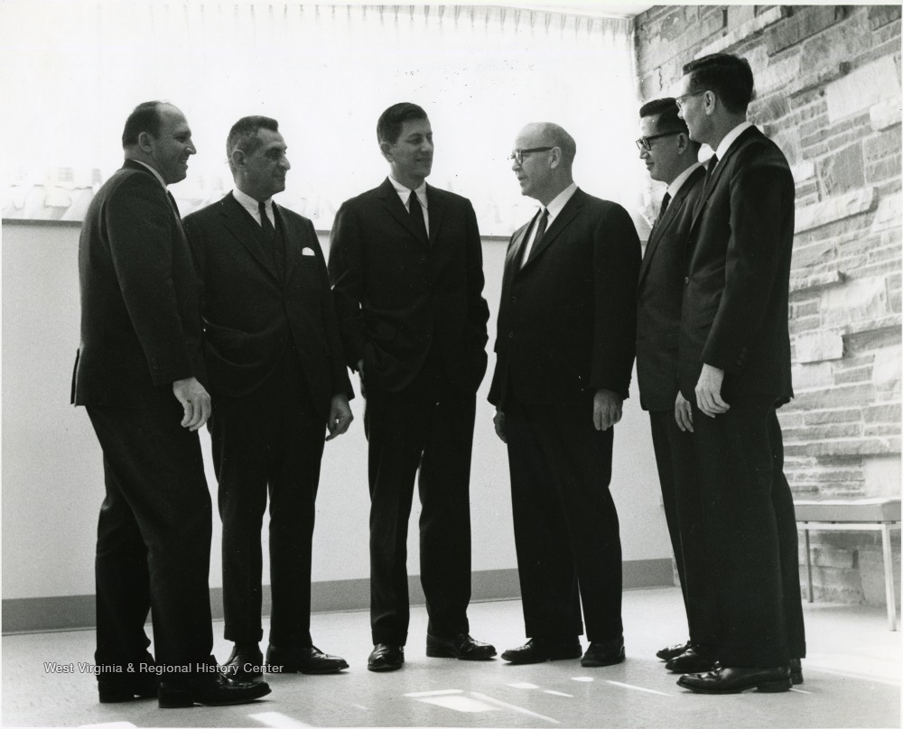 - 'The Feb. 22-24, 1967 "Lessons of History" Symposium featured a panel session with four top historians speaking. Shown above, from left to right, are: Dr. Fred G. Burke, Syracuse University; planning committee chairman Dr. John A. Caruso, WVU prof. of History; Dr. Thomas T. Hammond, University of Virginia; moderator Dr. Otis Rice, W. Va. Institute of Technology; Dr. Samuel C. Chu, University of Pittsburgh; and Dr. Lewis Hanke, Columbia University.'