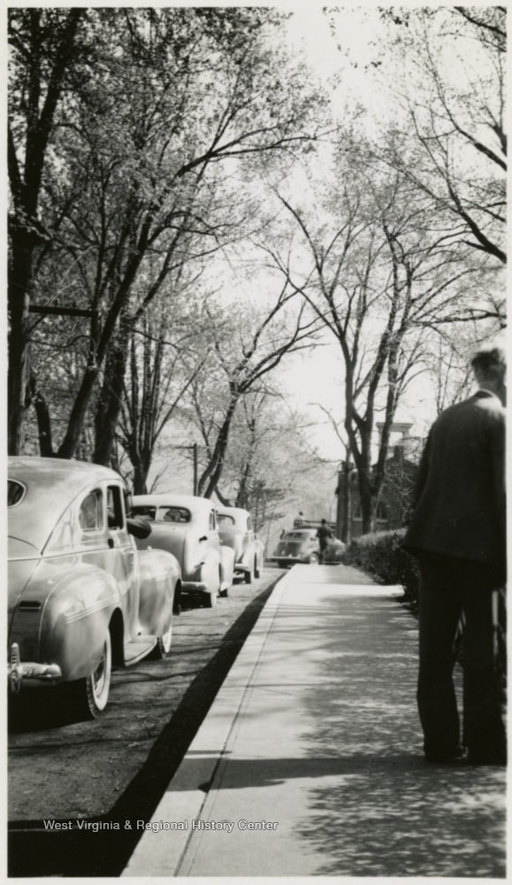 Cars Parked Along a Sidewalk, Storer College, Harpers Ferry, W. Va.