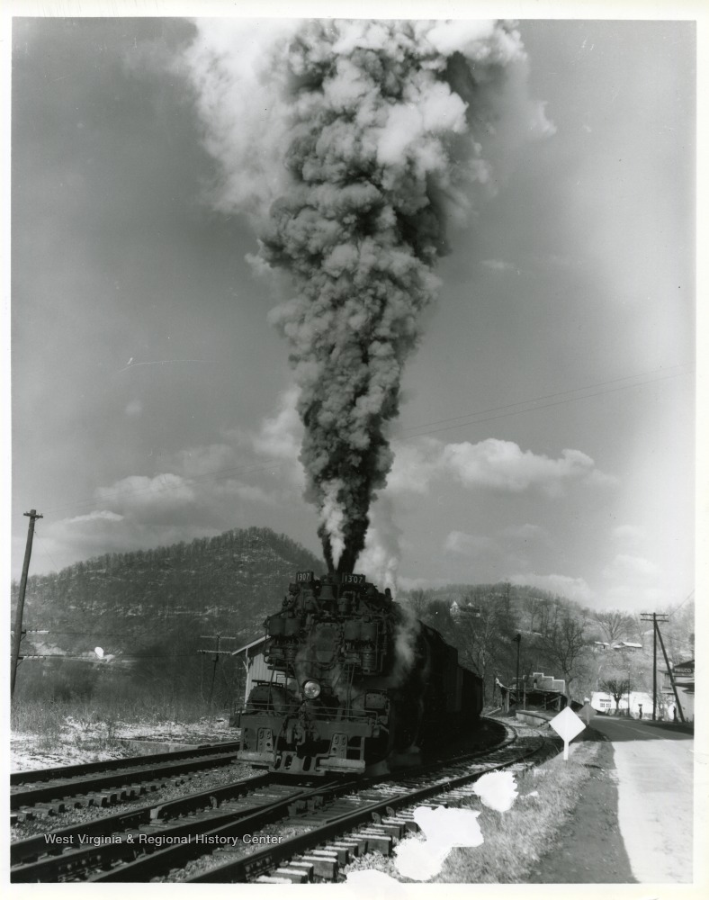 - Image from the collection of the Chesapeake and Ohio Historical Society. 'CSPR-3698: H-6 2-6-6-2 Mallet #1307 starting coal train on Logan branch in 1955, high straight column of exhaust.'