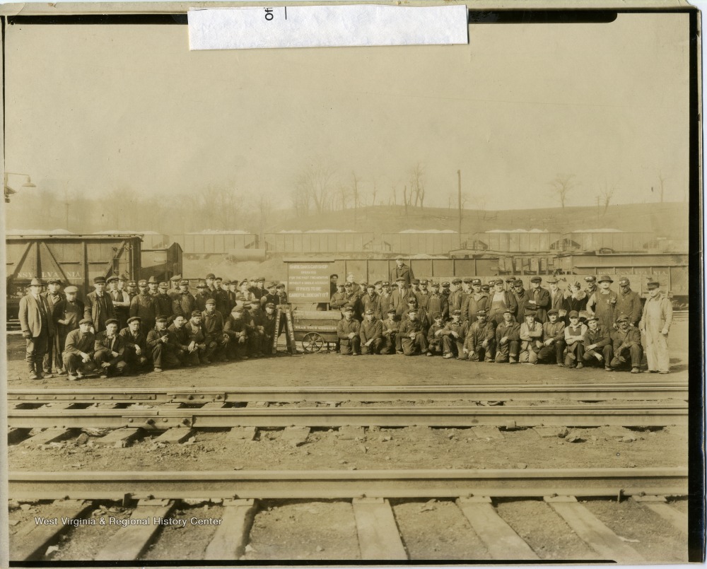 - The workers at the Shire Oaks car shop in Washington, Pa. pose behind the rails: on the sign and a cart in the middle of the group has a few safety slogans for workers written.