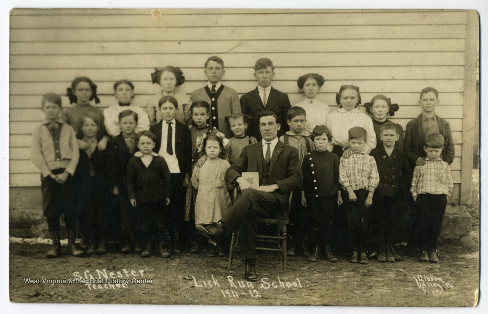- S. G. Nester (Teacher) and his students in Lick Run School.