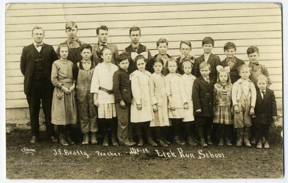 - Portrait of Students of Lick Run School with J. F. Beatty (Teacher).