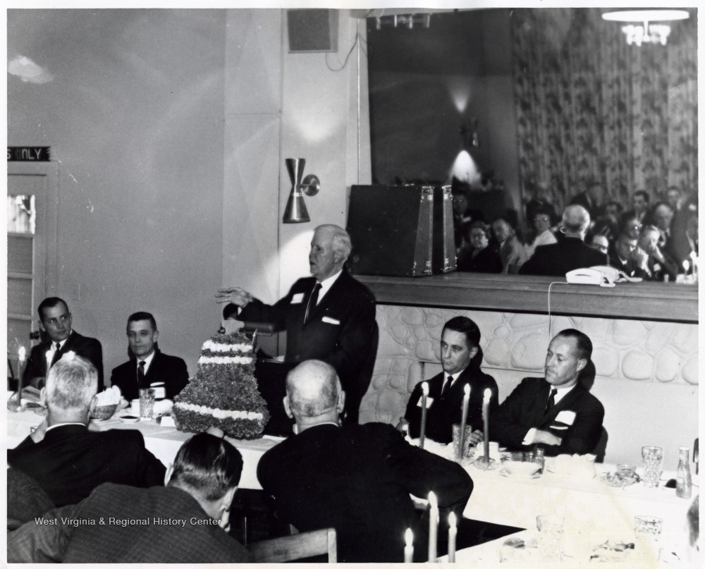 - A photograph of Harley Staggers giving a speech at a gathering.