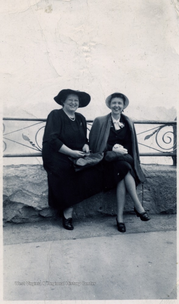 - Two Unidentified Women Sitting on a Stone Wall