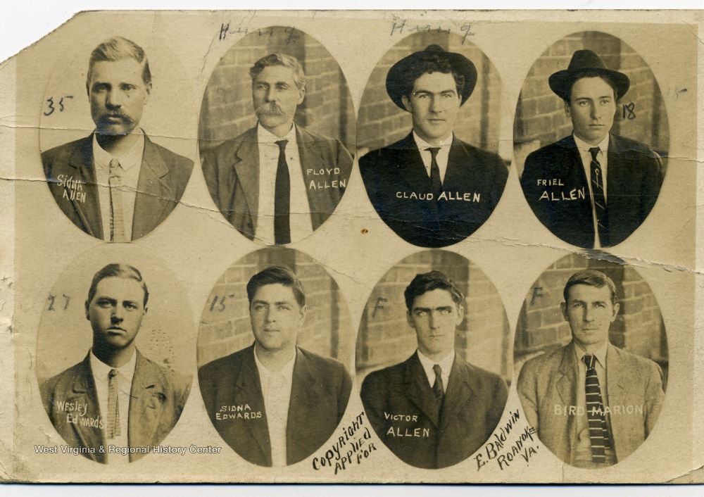 - Top row from left to right: Sidna Allen; Floyd Allen; Claud Allen and Friel Allen, Bottom row from left to right: Wesley Edwards; Sidna Edwards; Victor Allen and Bird Marion. Possibly Randolph County, W. Va.
