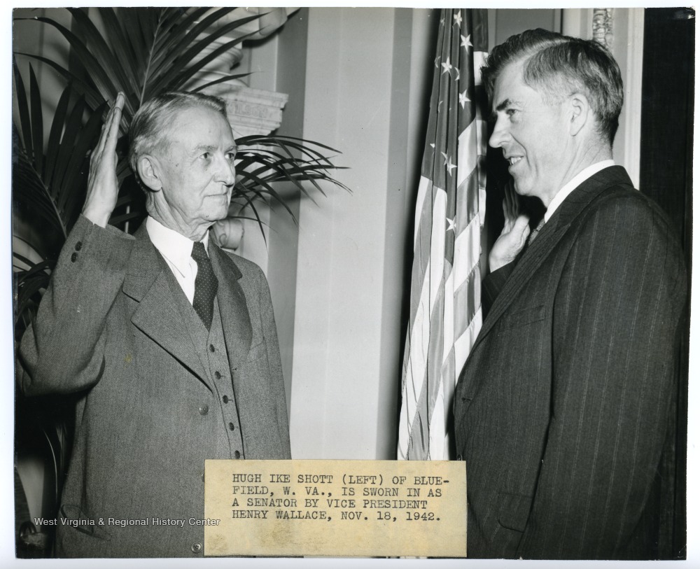 - 'Hugh Ike Shott (left) of Bluefield, W. Va., is sworn in as a senator by Vice President Henry Wallace.'